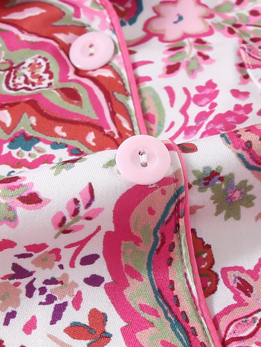 Flowers Charm Pajama set full sleeves (Pink)