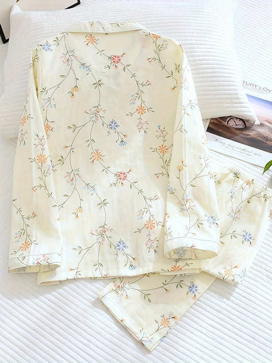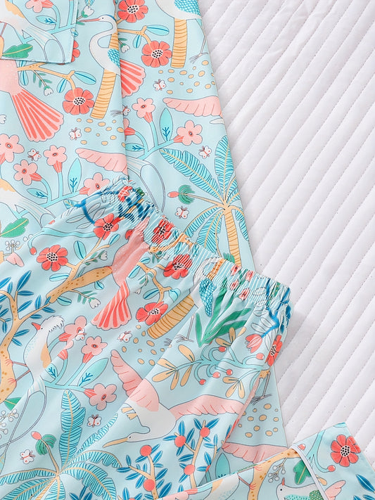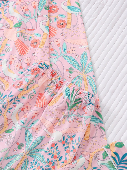 Floral bird pajamas set full sleeves (Four seasons)